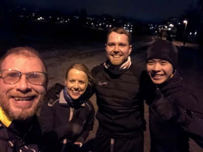 Løpegruppa samles for felles treninger. På vinteren er vi inne på Bislett hvor intervaller er det mest hensiktsmessige. På vår/sommer/høst blir det flere lengre turer med flere kilometer i beina for å forbedre formen og muligens forberede oss til eventuelle løp.